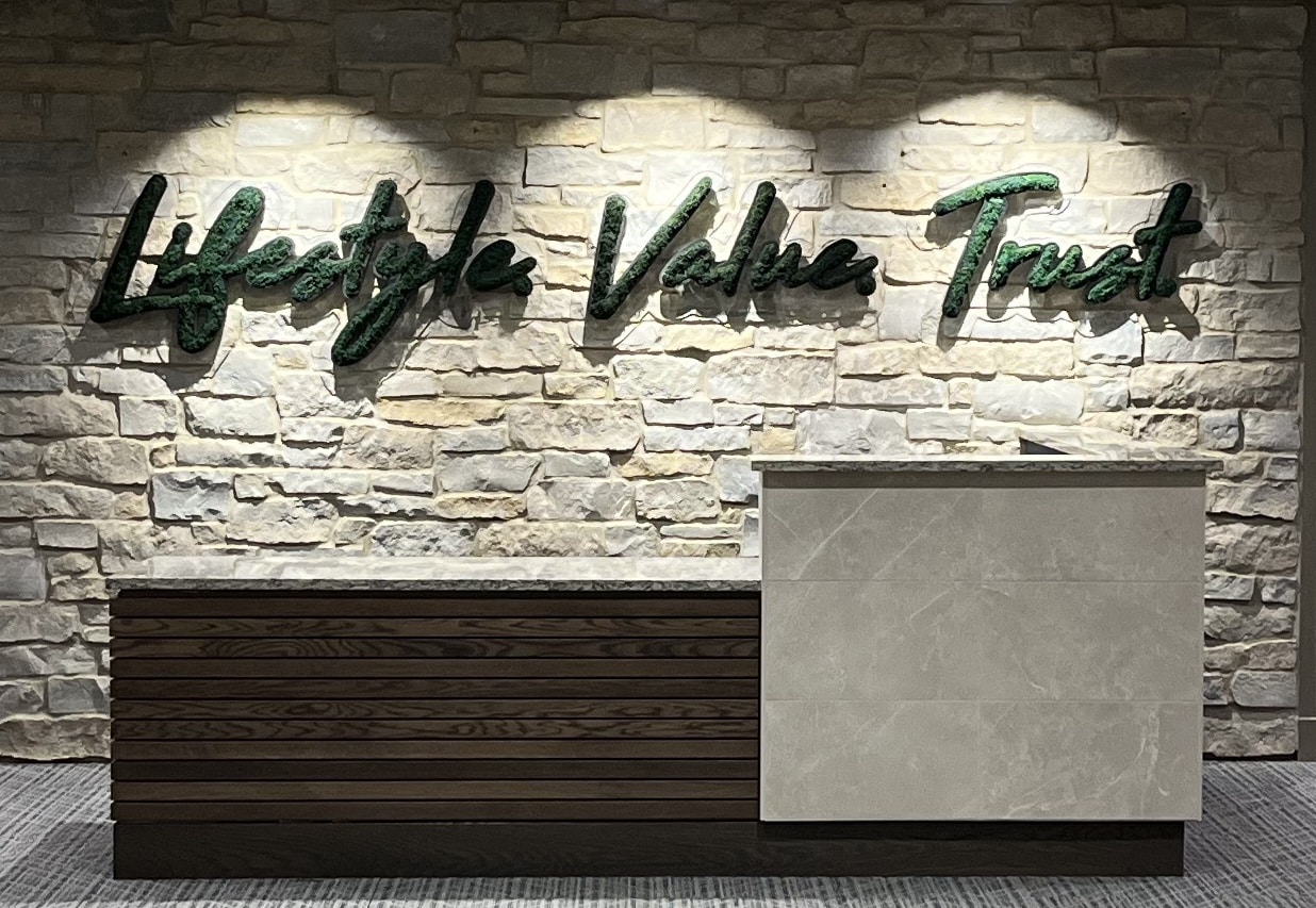 Our unique assembly process infuses living moss air filters seamlessly into your business logo, resulting in an extraordinary 3D work of art that elevates your brand’s presence. Not only a visual statement, our moss walls are designed for wellness, incorporating Moss Pure’s award-winning, patent-pending technology that actively purifies the air by capturing carbon dioxide, dust, allergens, bacteria, and viruses while improving respiratory health for your clients and staff.